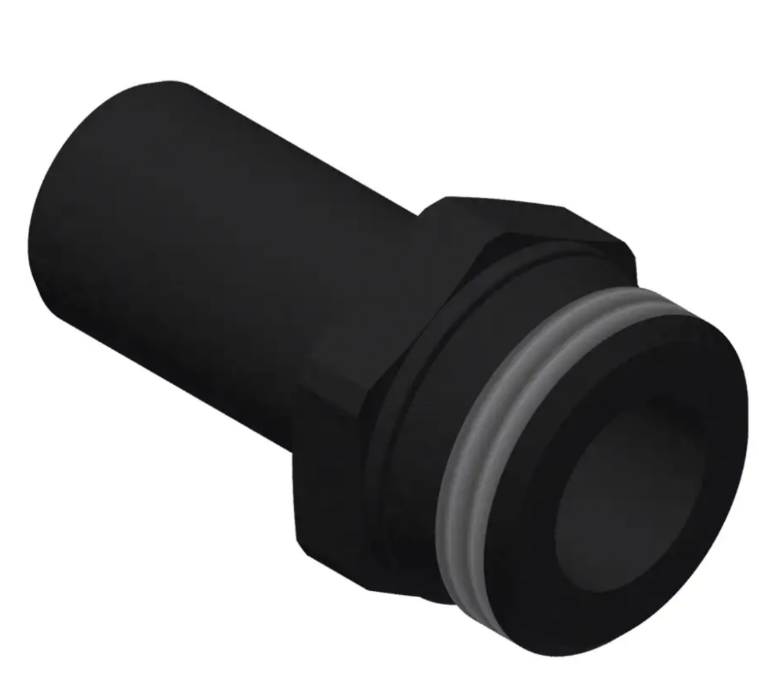 1/2"-BSP x 15 mm Kunststoff-/Delrin-Adapter. Dient als Verbindungsstück, um bei Bedarf mehrere Verteiler zu verbinden und so zusätzliche Ausgänge in einem Infusionssystem zu schaffen.