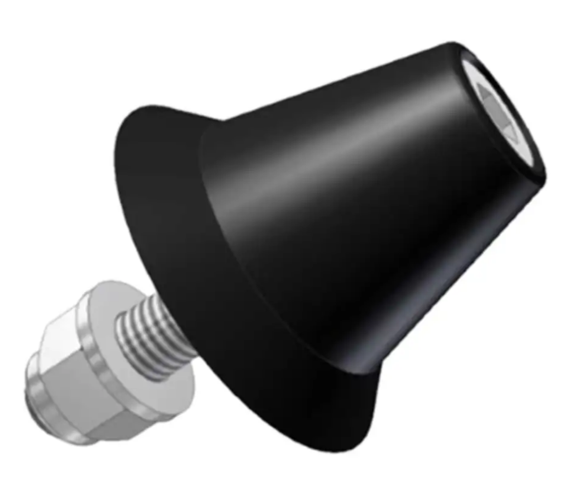 Gefräster Delrin-Formpositionierungskegel zur Verschraubung am Flansch einer A-Flächenform zwischen den inneren und äußeren Formdichtungen. Der Kegel ermöglicht die präzise Positionierung in X-, Y- und Z-Richtung zwischen der oberen und unteren Formoberfläche.