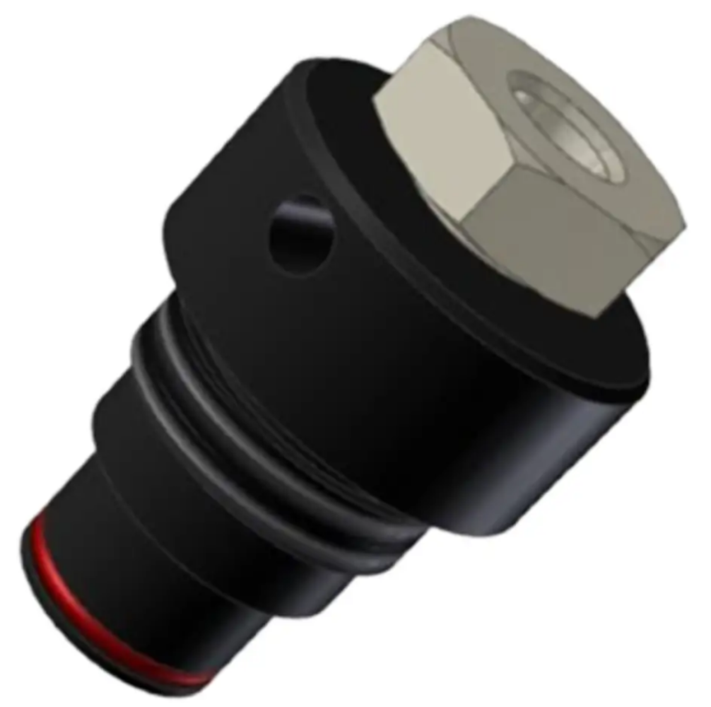 3/8"-BSP-Delrin-Einsatz mit 10-mm-Durchgangsbohrung und zwei Silikon-O-Ringen. Entwickelt für die Verwendung mit einem Formeinsatz zum Anschluss eines 10-mm-Injektions- oder Entlüftungsrohrs an eine geschlossene Form.